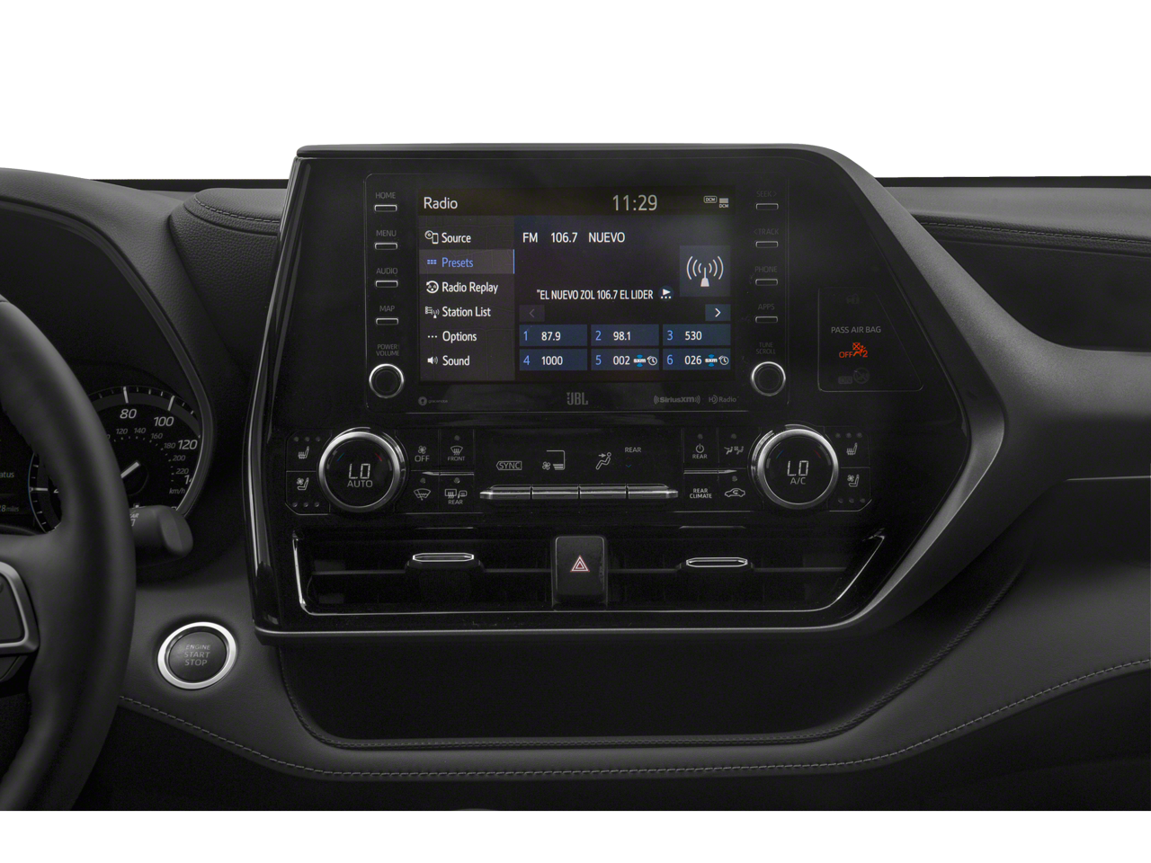 - Radio: Premium Audio w/JBL Clari-Fi -inc: 11 speakers, subwoofer, amplifier, 8" touch-screen HD Radio, USB media port, dynamic navigation w/up to 3-year trial, dynamic POI search, dynamic voice recognition, hands-free phone capability, music streaming via Bluetooth® wireless technology, Android Auto, Apple CarPlay, Amazon Alexa compatible, SiriusXM w/3-month All Access trial, Connected Services--Safety Connect w/1-year trial, Service Connect w/10-year trial, Remote Connect w/1-year trial, Wi-Fi Connect w/up to 2GB within 3-month trial and Destination Assist w/1-year trial, See Toyota.com/audio-multimedia for details