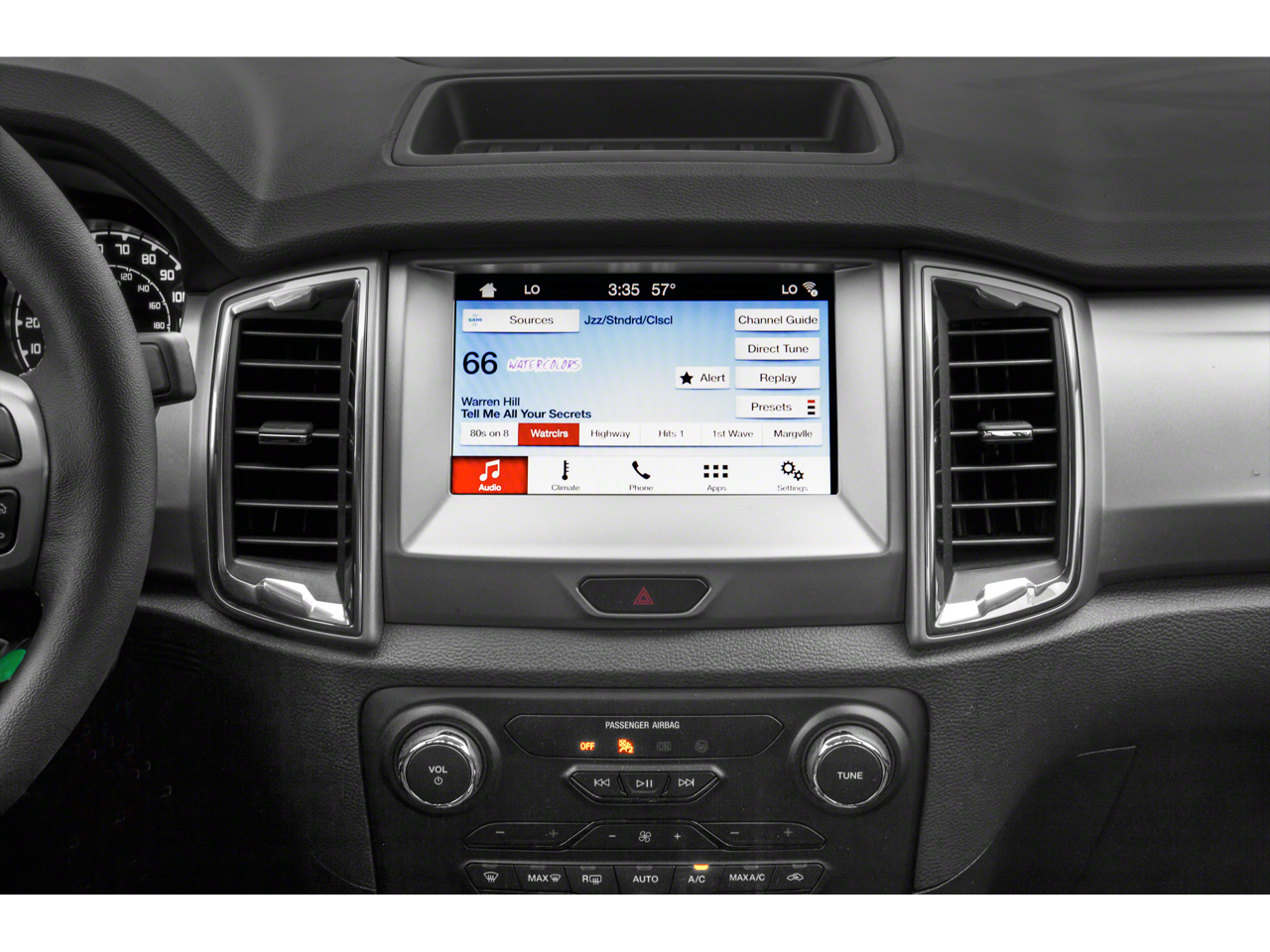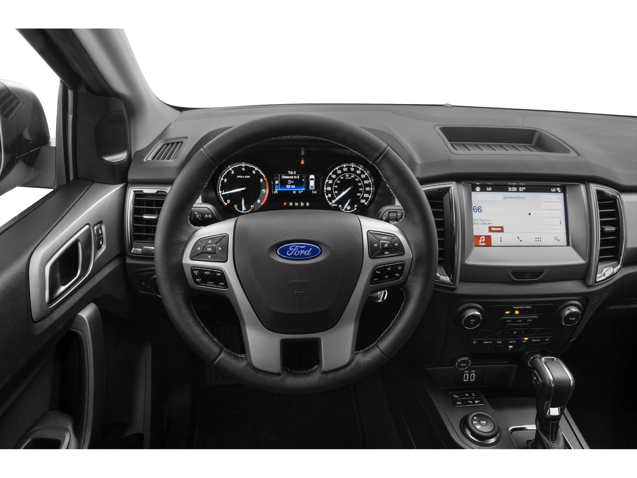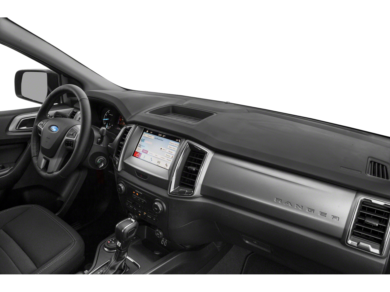 Step inside the Ranger's cabin, and you'll be greeted by a wealth of premium features that elevate the driving experience. The Leather-Wrapped Steering Wheel and Shifter provide a refined and tactile feel, while the Auto-Dimming Rearview Mirror and Reverse Sensing System offer enhanced visibility and convenience. The 110V AC Power Outlet and 2 USB ports located in the rear of the center console cater to your connectivity needs, ensuring you stay powered up on the go.
